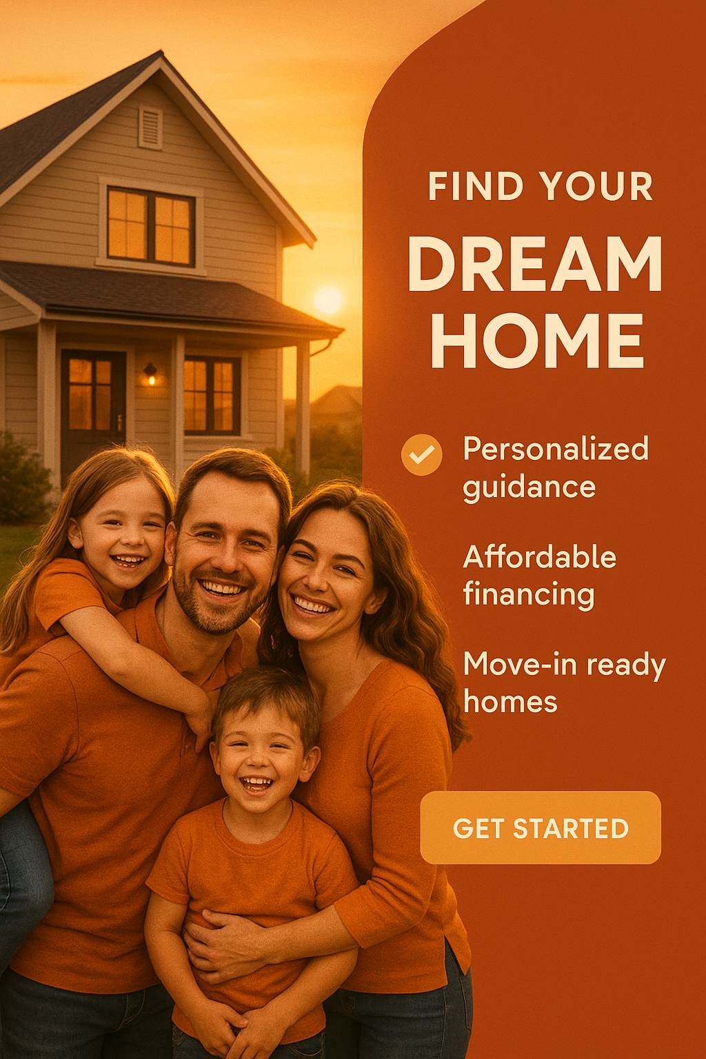 Real Estate Promotional Image Featuring Family and Home