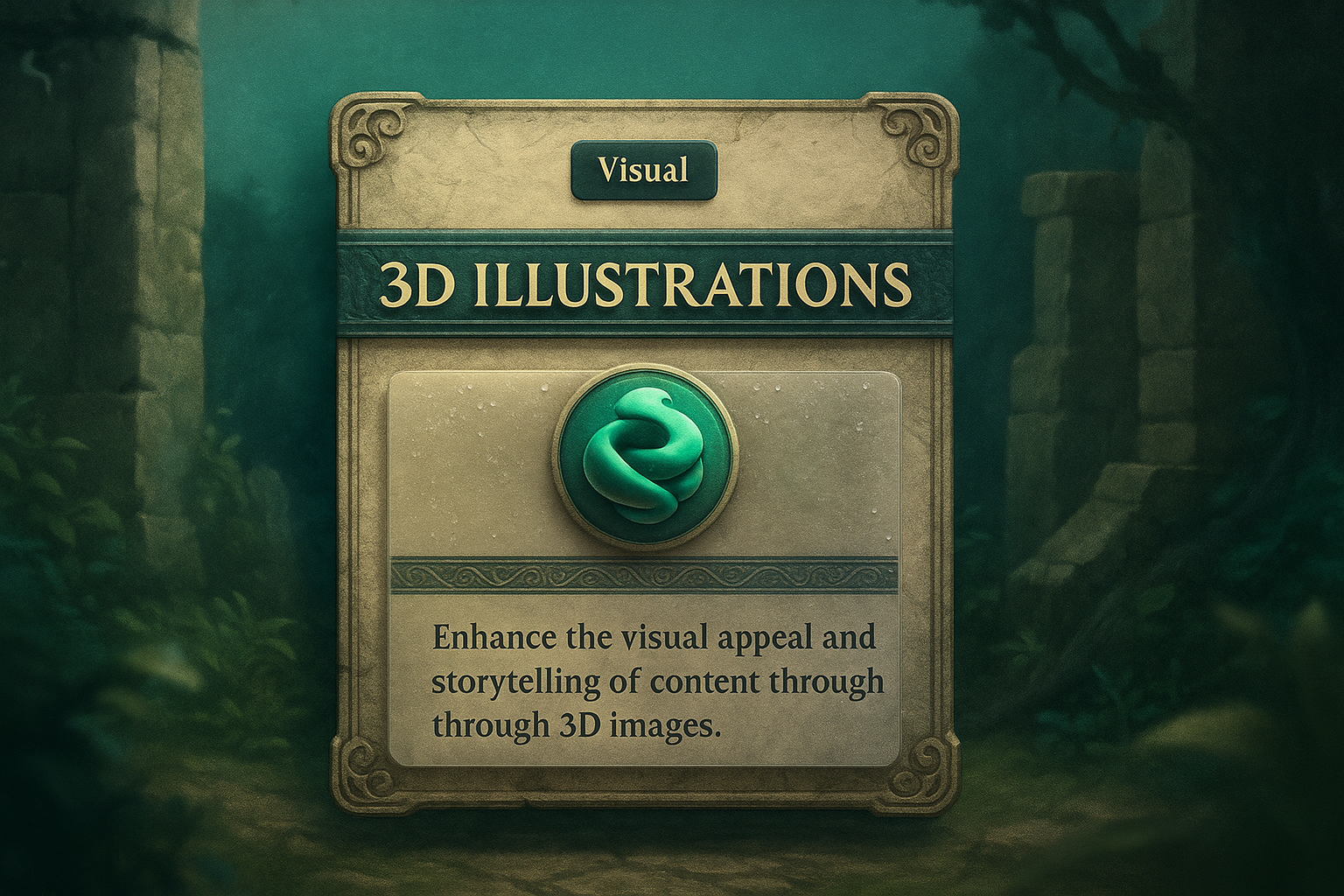 Dynamic 3D Illustration with Gradient Background and Text Block