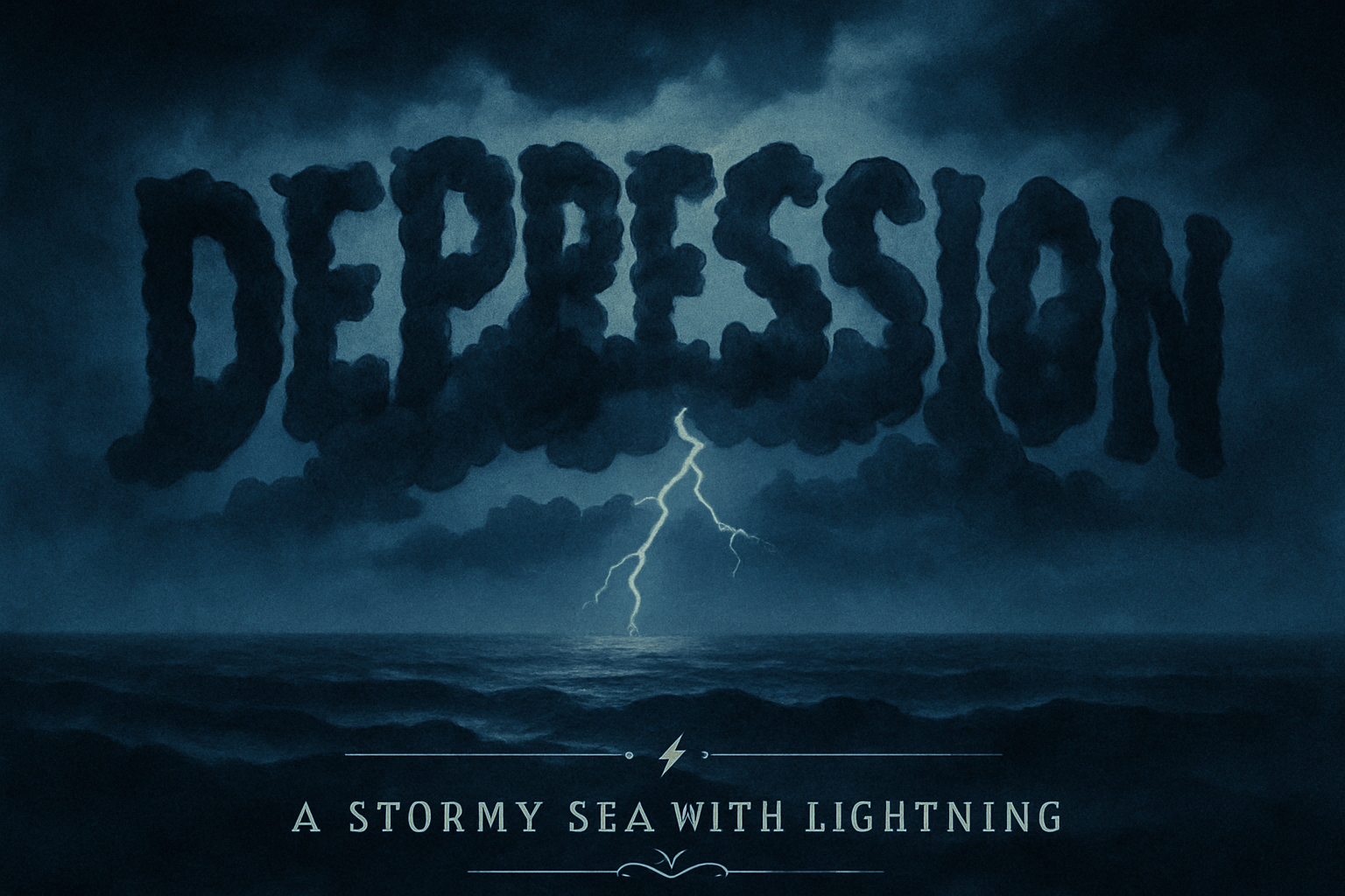 Dark Themed Artwork Representing Depression with Stormy Sea