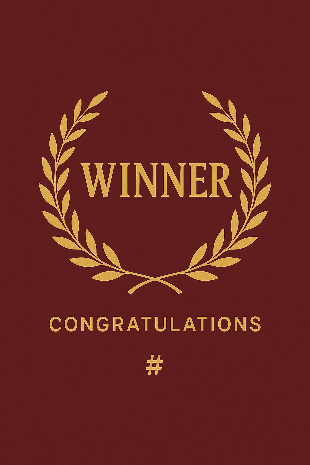 Elegant graphic celebrating a winner, featuring a laurel wreath and bold typography. Ideal for awards ceremonies, competitions, or recognition events.