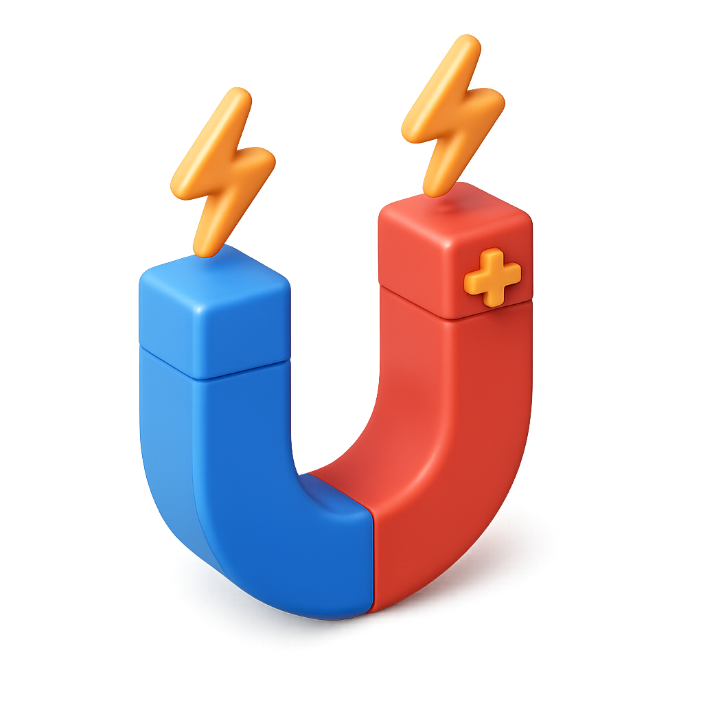 Colorful 3D U-Shaped Magnet Icon with Electric Lines