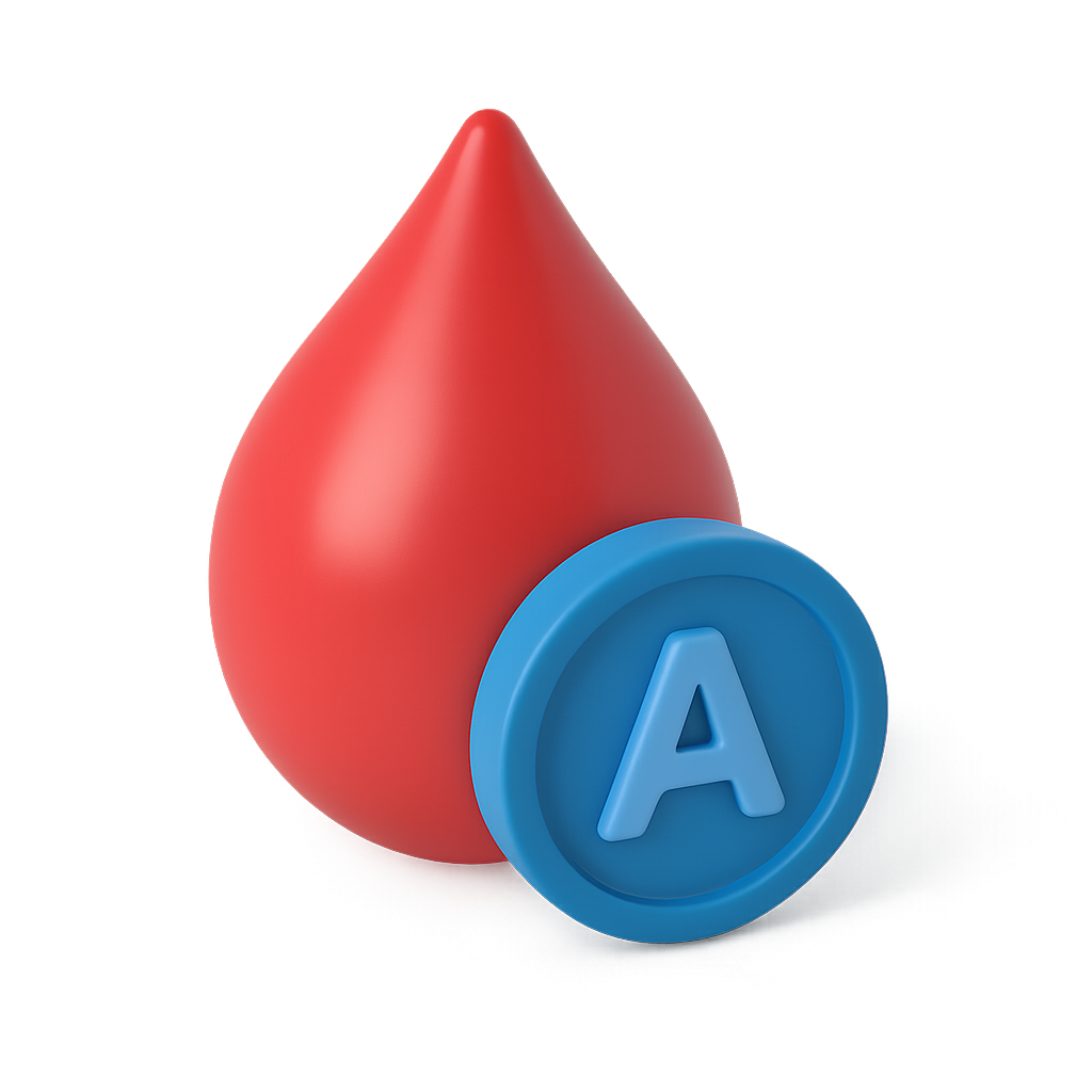 /Collection: /by davooda/Type: PNG/A visually striking 3D icon featuring a red blood droplet alongside a blue circular token marked with the letter 'A'. The design is isometric, showcasing a vibrant and modern appearance.