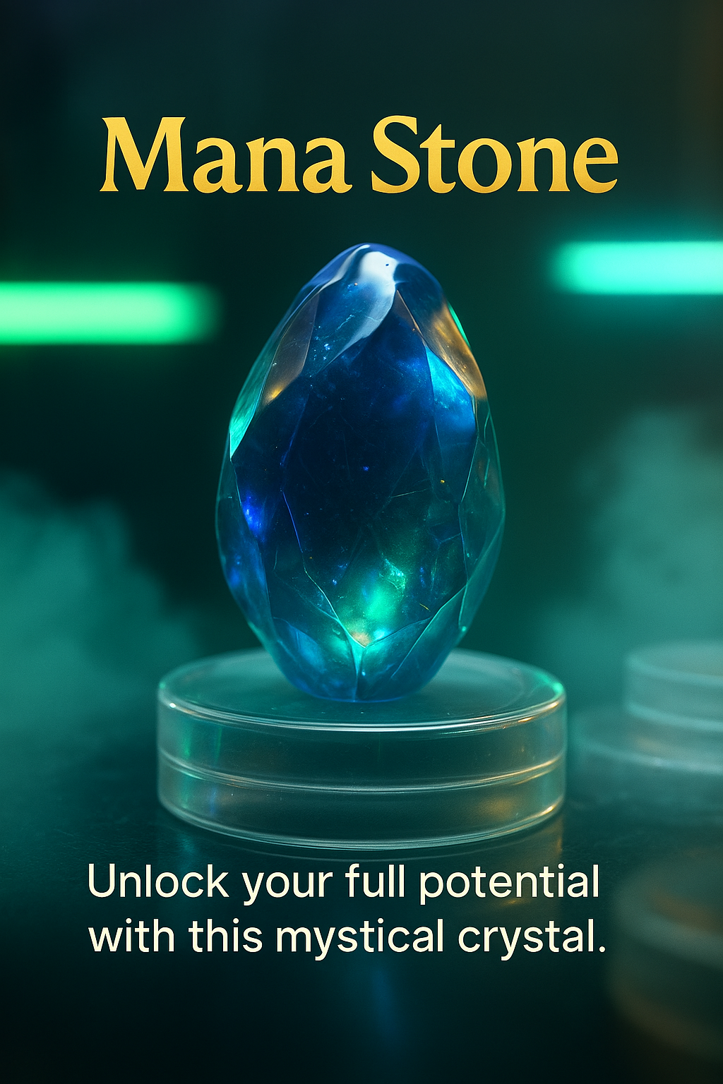 Enchanting 3D Illustration of a Mana Stone with Magic Source Info