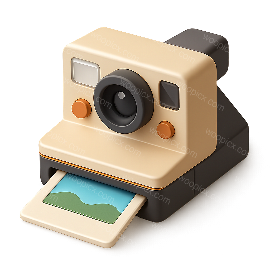 Stylish 3D Polaroid Camera Icon with Film Effect