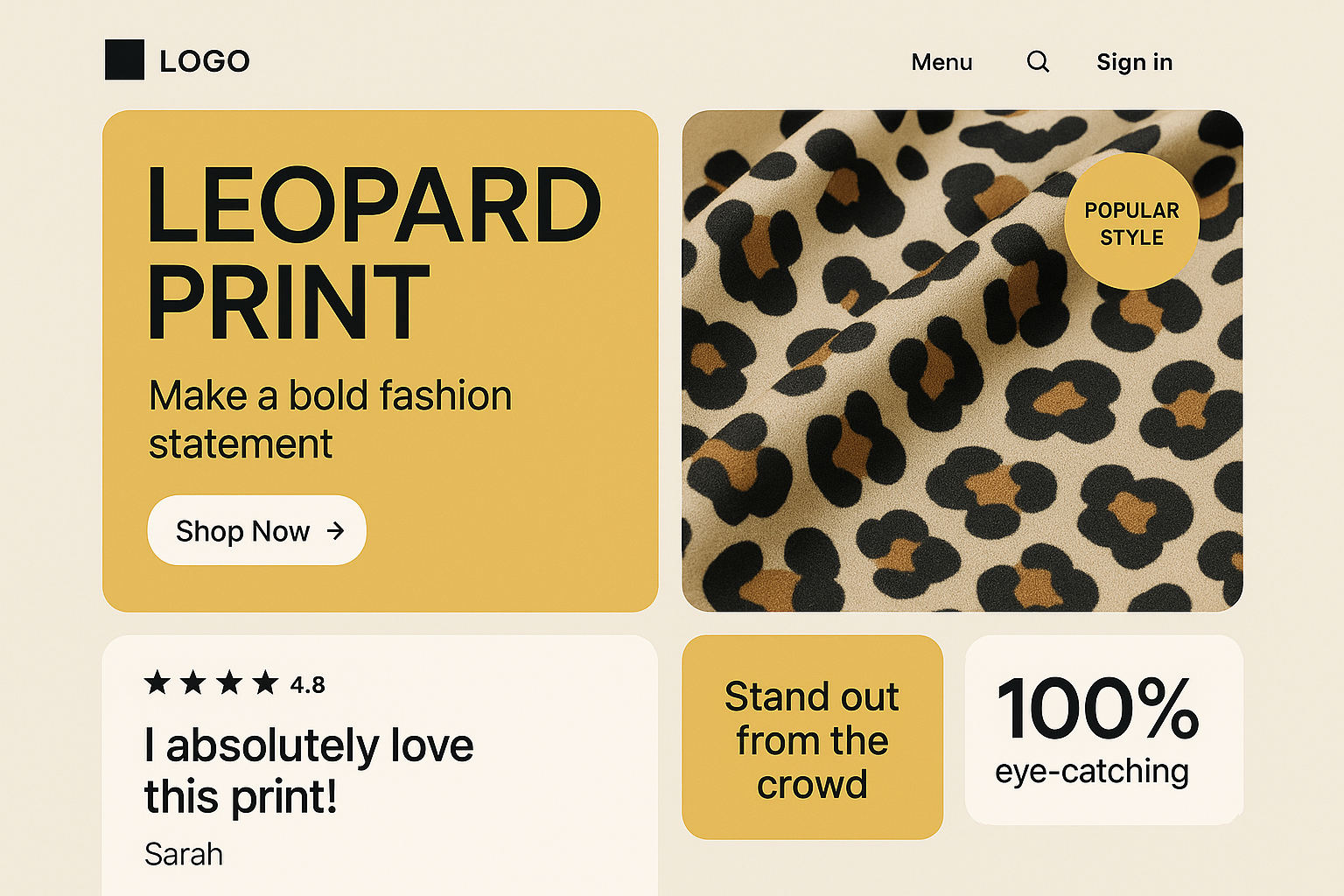 Modern Bento Style Landing Page Design with Leopard Print