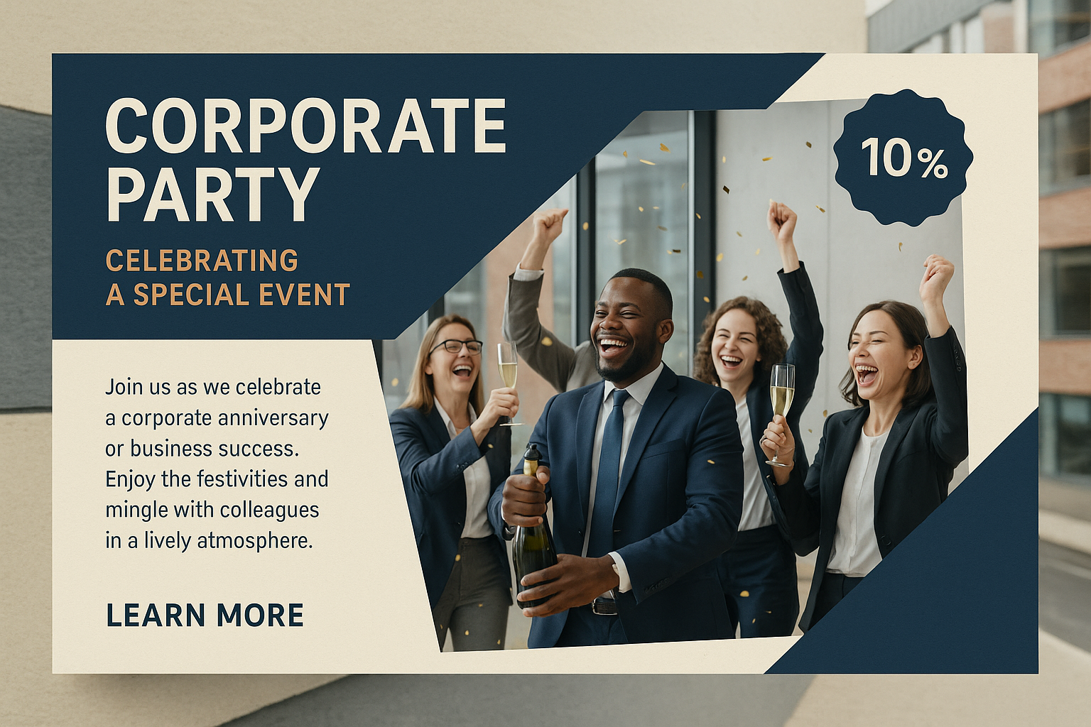 /Collection: /by davooda/Type: PNG/A lively office party scene showcasing businesspeople enjoying a corporate anniversary celebration. The atmosphere is filled with joy as they toast with drinks, emphasizing camaraderie and success.