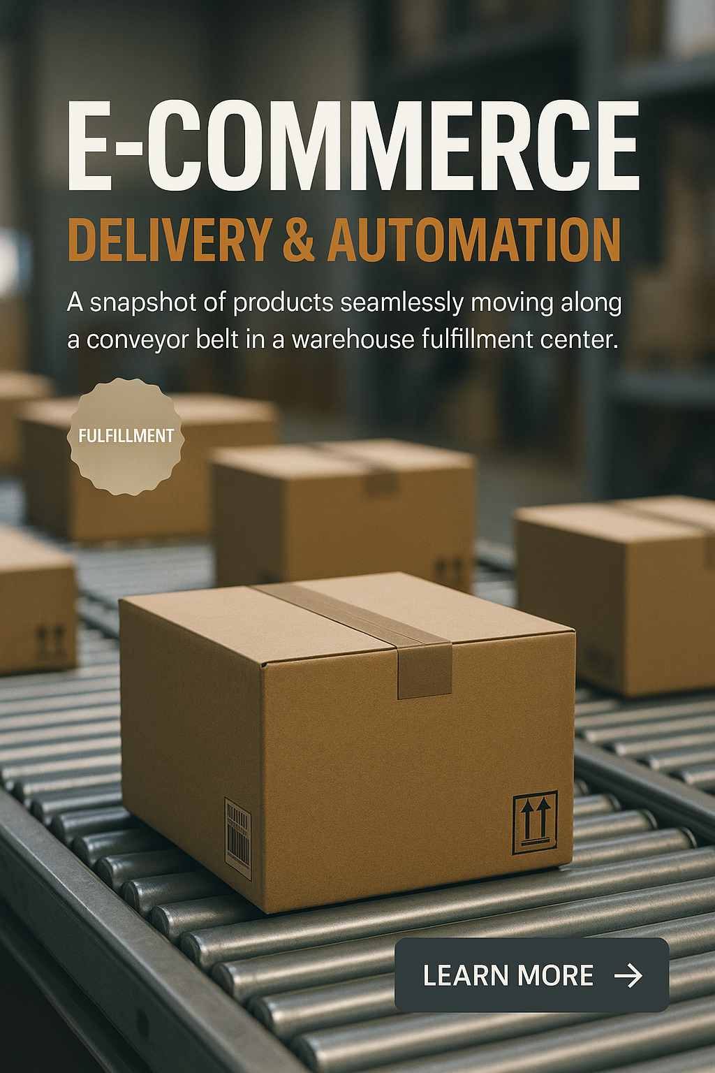 E-Commerce Fulfillment Graphic with Packaging and Logistics Theme
