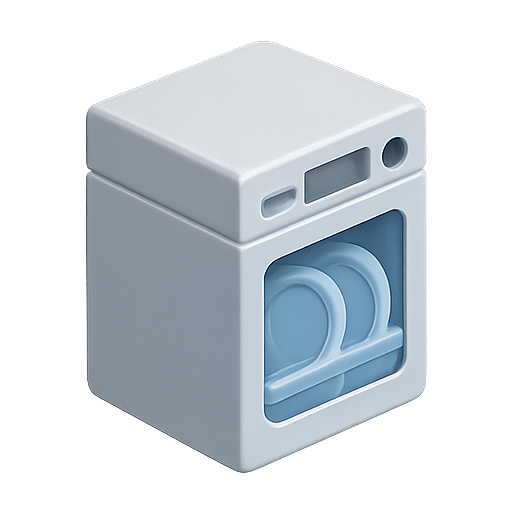 A modern, stylized icon of a dishwasher with a minimalist design, featuring a clean aesthetic perfect for app interfaces or web graphics.