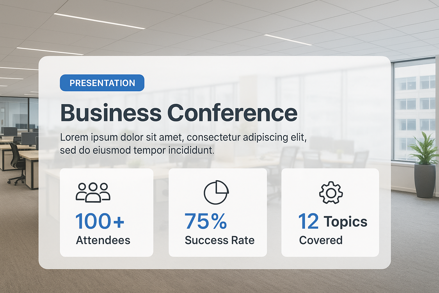 /Collection: /by davooda/Type: PNG/A professional presentation graphic featuring key statistics about a business conference. The clean design and organized layout make it suitable for corporate communication.