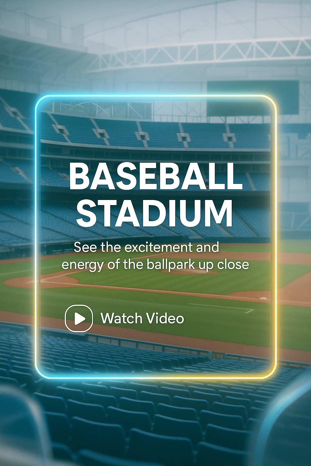 Vibrant promotional image featuring a baseball stadium with an engaging call-to-action for video content. Ideal for sports marketing and fan engagement.