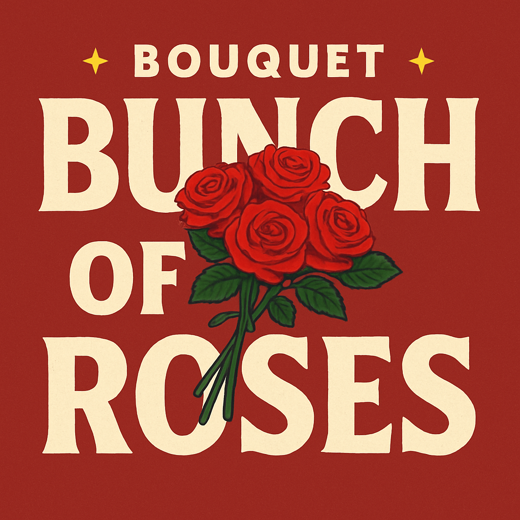 /Collection: /by davooda/Type: PNG/Vibrant graphic design showcasing a bouquet of roses with bold typography. Ideal for floral promotions, greeting cards, or events related to love and celebration.