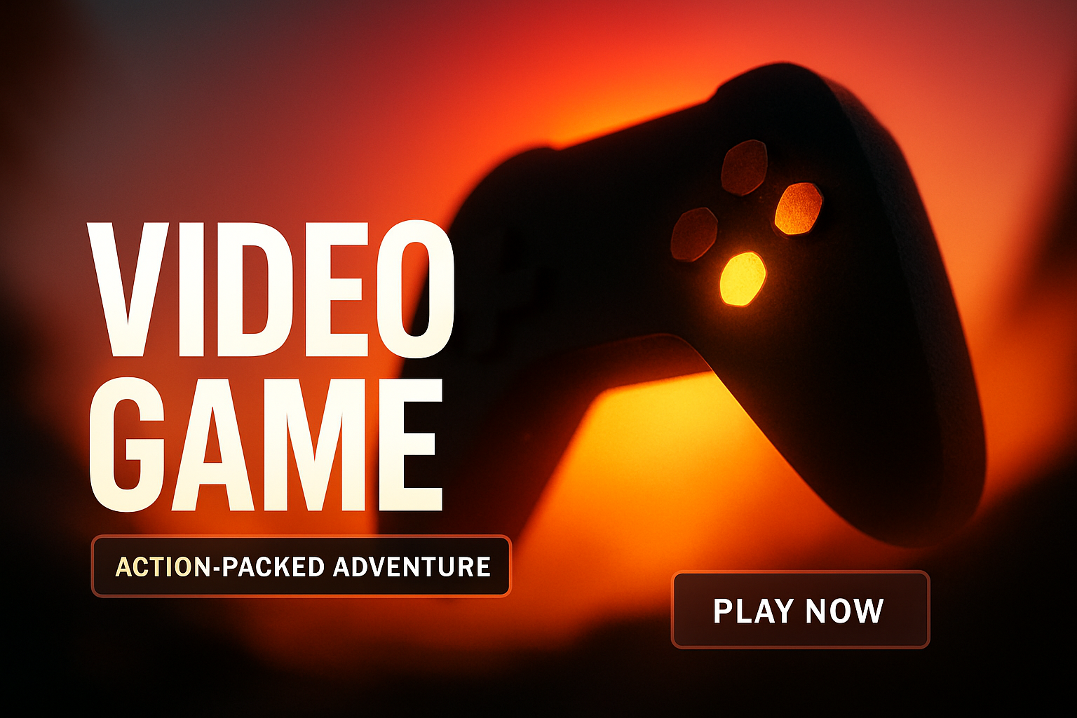 This vibrant promotional graphic features a gaming controller with a glowing background, ideal for attracting gamers. It emphasizes action and excitement.