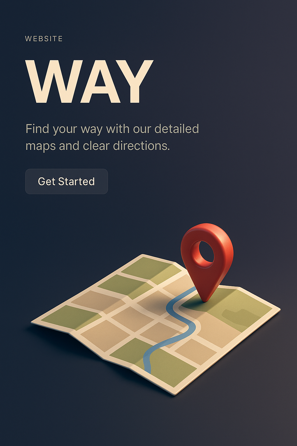 /Collection: /by davooda/Type: PNG/A modern 3D representation of a map featuring a prominent location pin. The design includes a dark gradient background, with clear text inviting users to explore detailed maps. The scene is visually engaging and minimalistic.