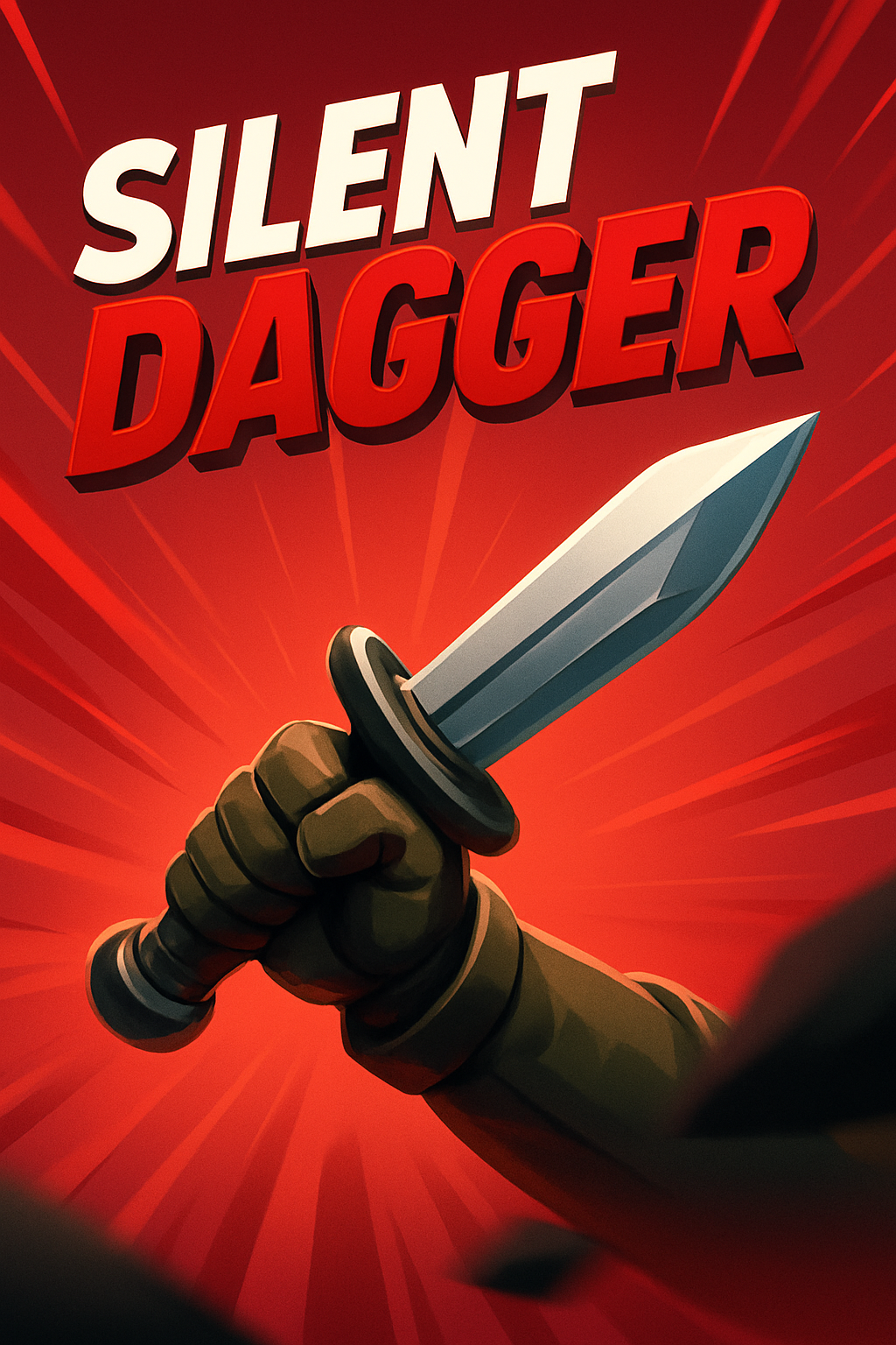 A striking visual of a hand gripping a dagger, set against a dynamic burst background. The title 'SILENT DAGGER' stands out prominently, emphasizing the theme of stealth and action.