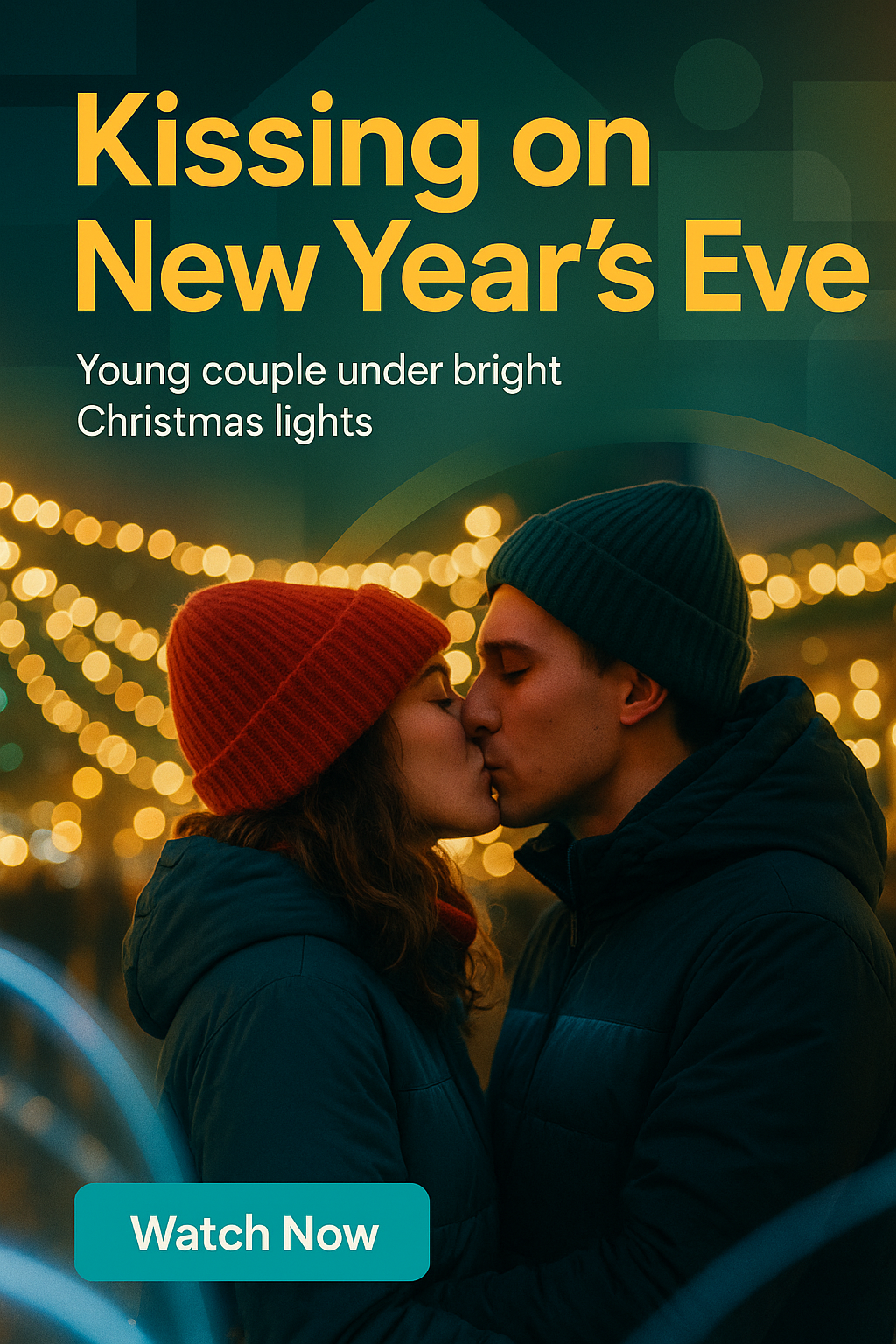Romantic New Year's Eve Kiss Under Christmas Lights