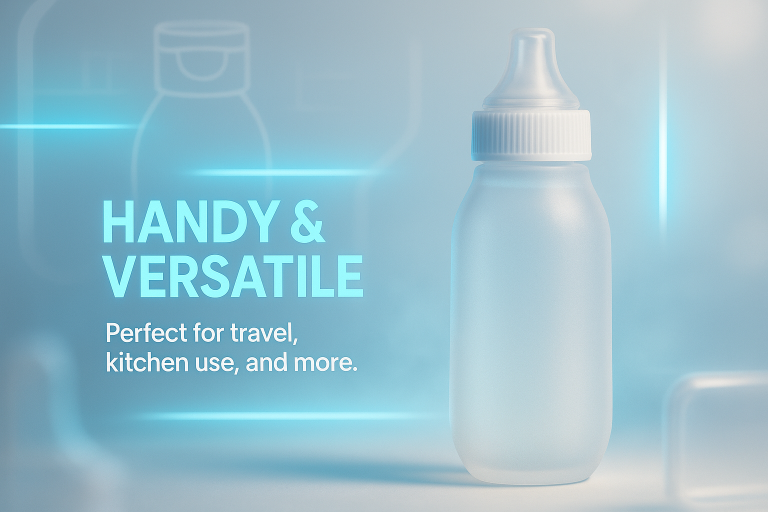 Sleek product showcase featuring a transparent bottle with a minimalist design. Ideal for promotional use in travel and kitchen contexts.
