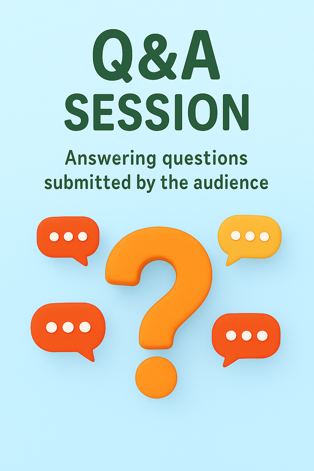 Engaging graphic for a Q&A session featuring a large question mark and chat bubbles, ideal for social media or event promotion.