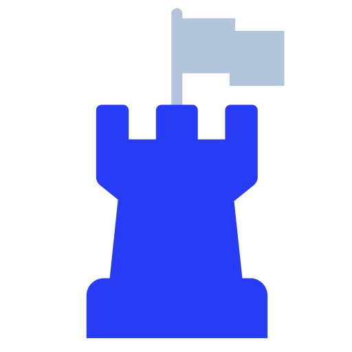 polish-blue simple icon: fortress, defense, castle, tower, building