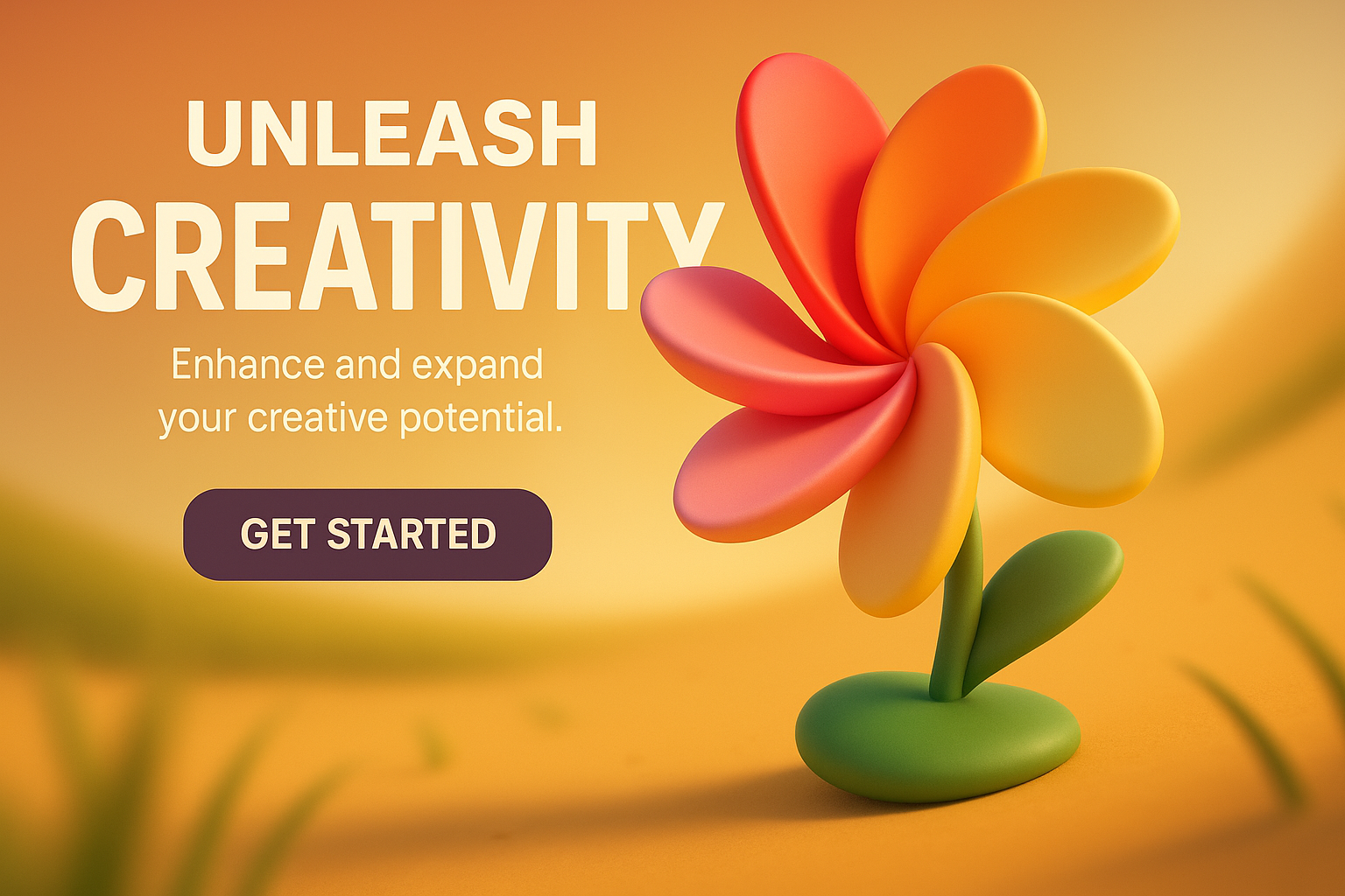 A vibrant 3D flower illustration with a warm gradient background, designed to inspire creativity. Ideal for promotional materials aimed at creative audiences.