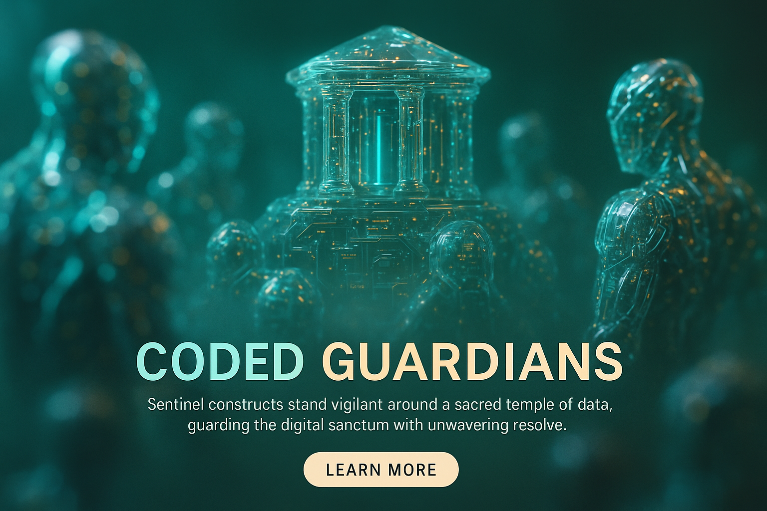 /Collection: /by davooda/Type: PNG/A hyperrealistic depiction of a sacred temple of data, surrounded by glowing coded guardians. The scene features intricate details, soft lighting, and a mesmerizing inner world of technology.