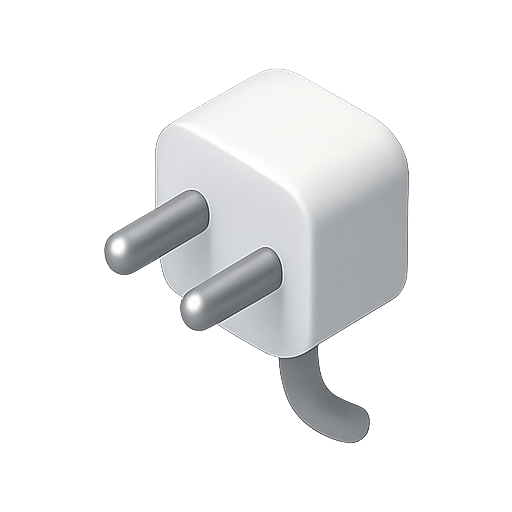 A minimalist illustration of a white electrical plug with metallic prongs, suitable for use in digital interfaces or educational materials related to electricity and electronics.