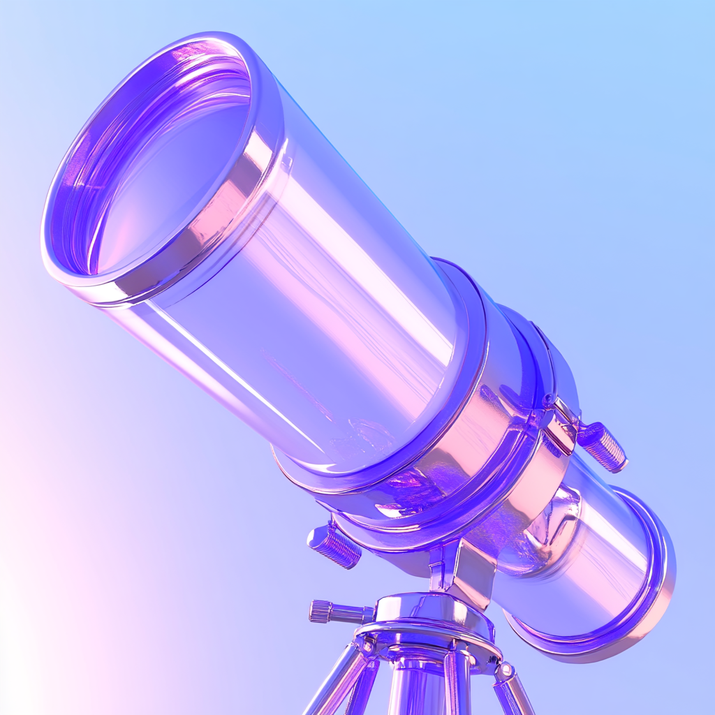 A visually striking 3D rendering of a telescope featuring bright colors and a modern design. Ideal for science-related content or astronomy themes.