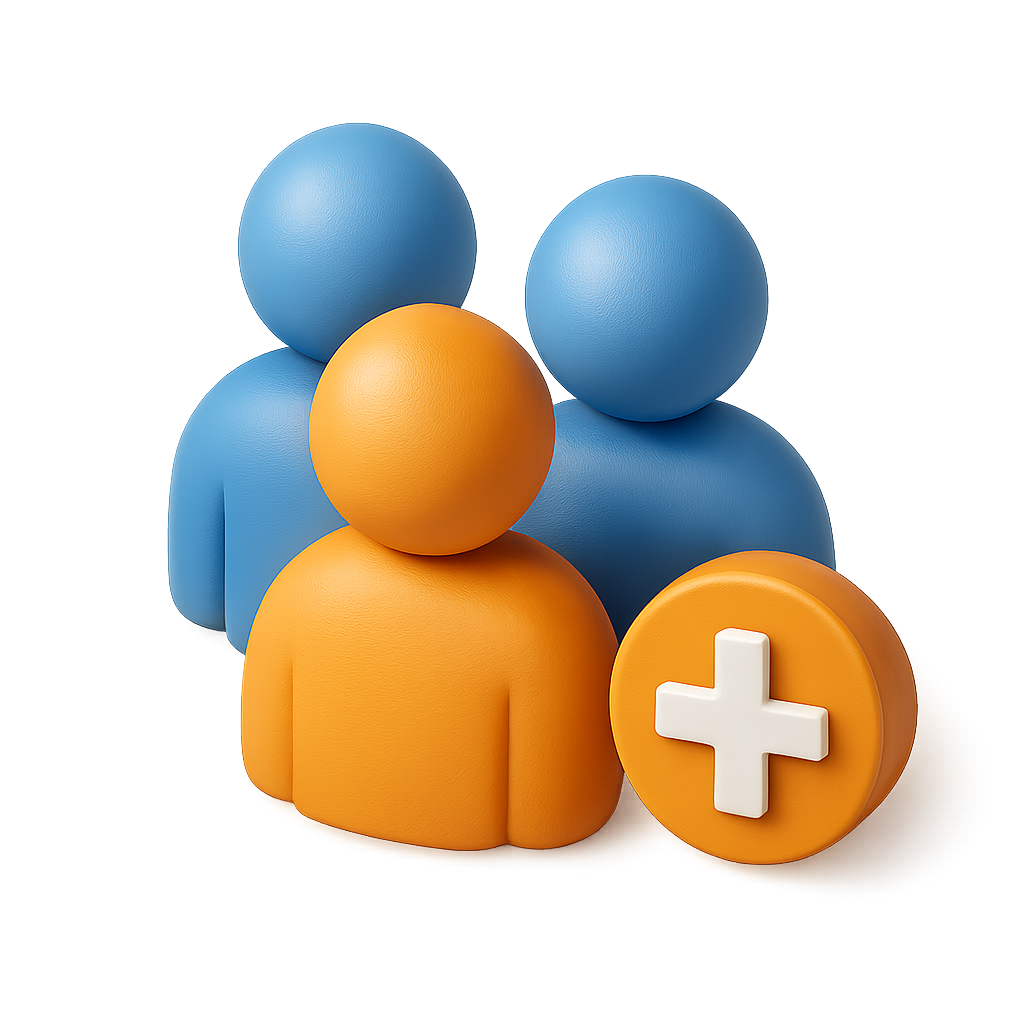 /Collection: /by davooda/Type: PNG/A visually appealing 3D illustration featuring three abstract figures, one in orange and two in blue, alongside a cross symbol. The design is isometric and volumetric with a transparent background.