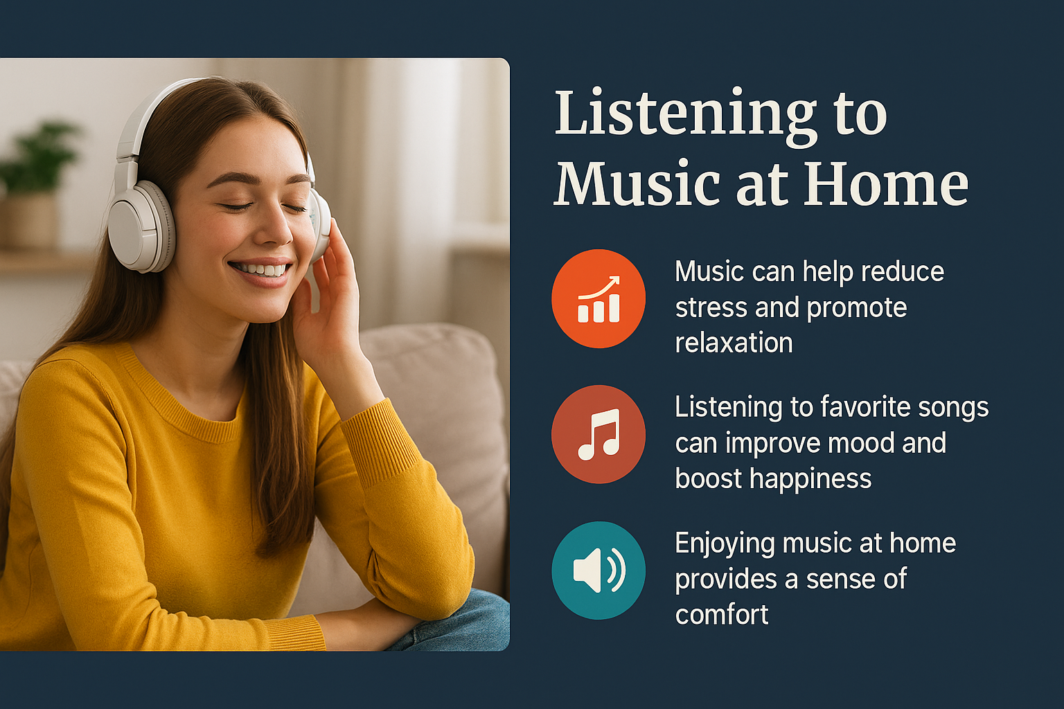 Promotional Graphic on the Benefits of Listening to Music at Home