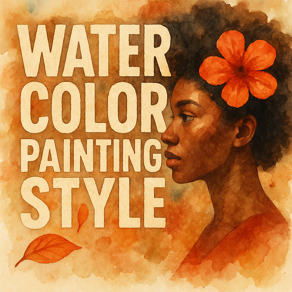 /Collection: /by davooda/Type: PNG/Artistic portrait featuring a side profile of a woman in a watercolor painting style. The warm color palette and bold typography create an inviting visual suitable for artistic promotions.