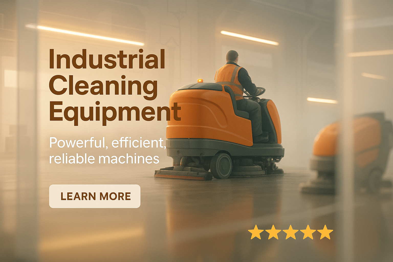 /Collection: /by davooda/Type: PNG/A visually appealing promotional graphic featuring industrial cleaning equipment in action. The design highlights efficiency and reliability, suitable for marketing to businesses in need of cleaning solutions.