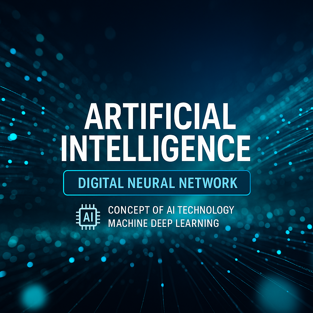 /Collection: /by davooda/Type: PNG/A visually striking digital graphic representing artificial intelligence and neural networks. Features a deep blue background with glowing particles, ideal for tech-related presentations and marketing.