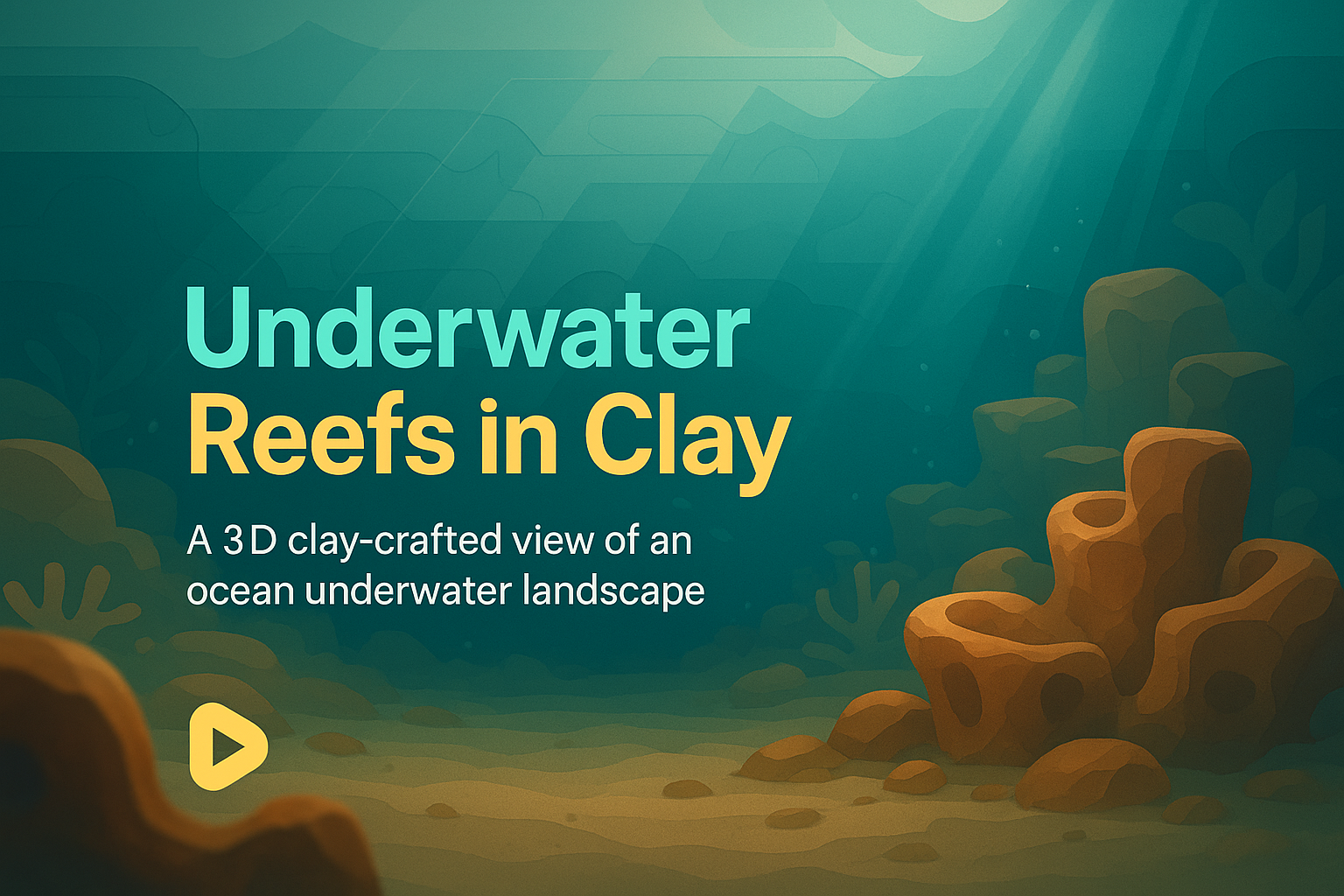 A visually striking 3D illustration of an underwater reef landscape crafted from clay, showcasing vibrant colors and imaginative design, perfect for creative projects or educational content.