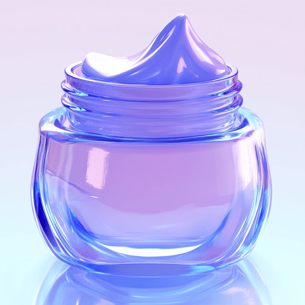A visually appealing skincare cream jar featuring a smooth, glossy design with a lavender cream. Ideal for cosmetic product marketing and branding.