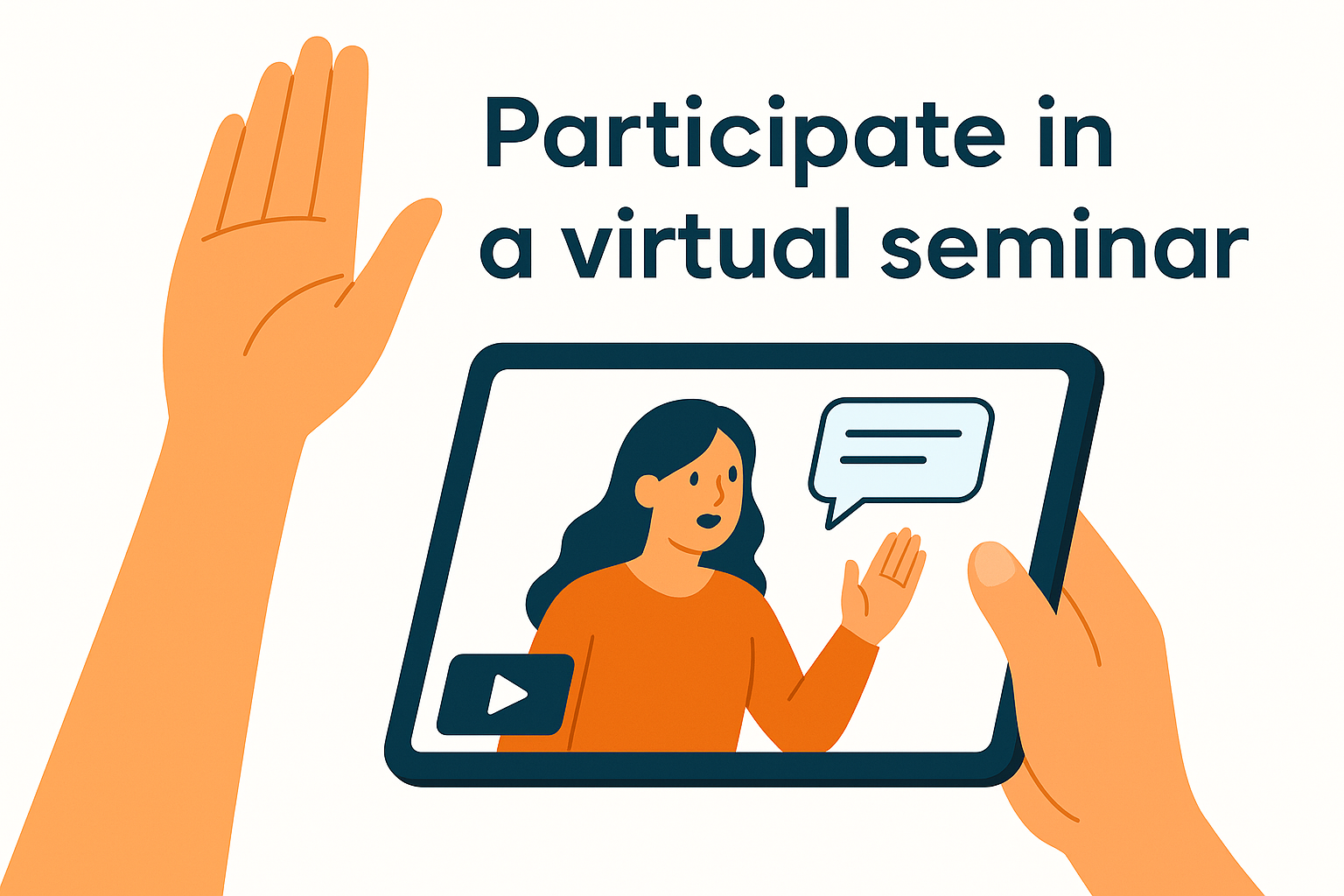 Illustration of Hands Holding a Tablet for Virtual Seminar Participation