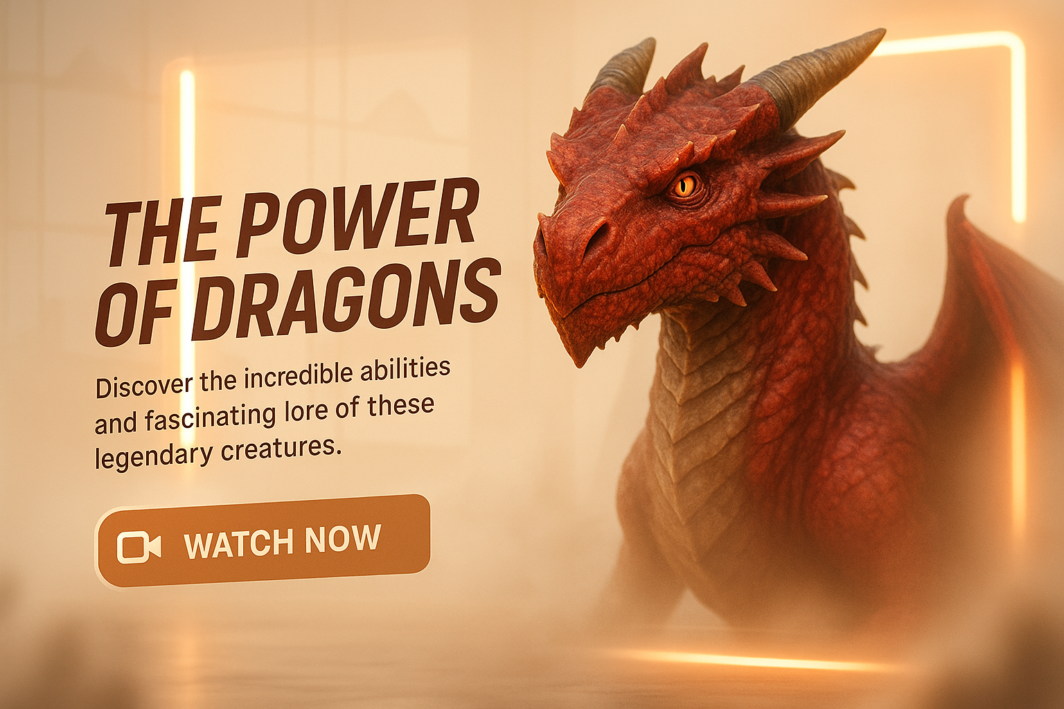 Dynamic promotional graphic showcasing a detailed dragon illustration, aimed at engaging fantasy enthusiasts. Ideal for video content or articles about dragons.