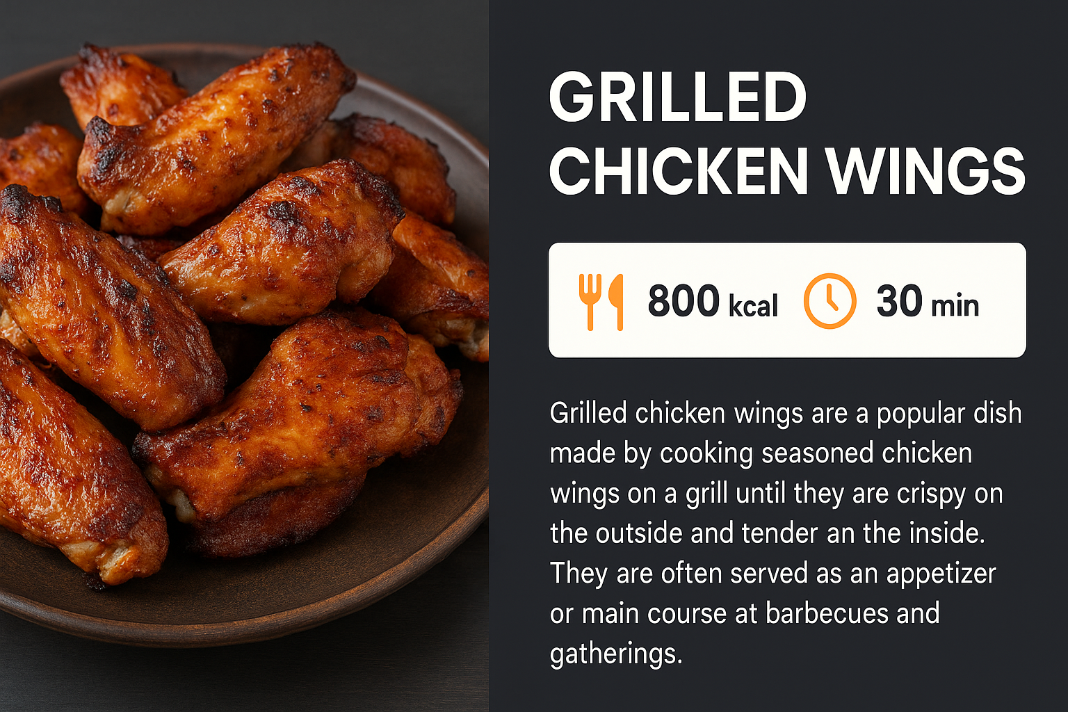 Delicious Grilled Chicken Wings Presentation with Rating and Price