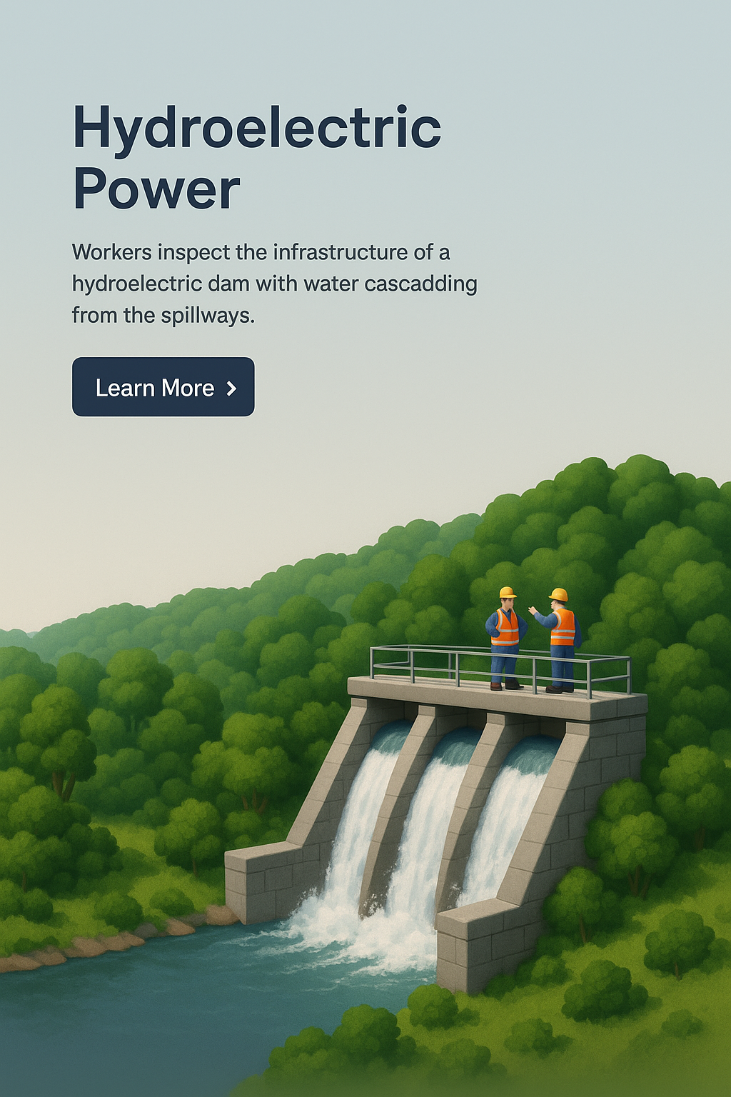 Hydroelectric Dam with Workers Inspecting Infrastructure