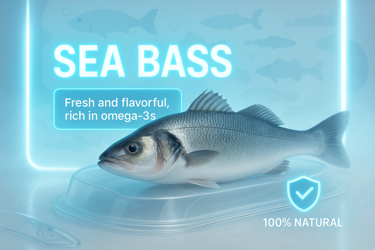 Product Showcase of Fresh Sea Bass with Natural Branding