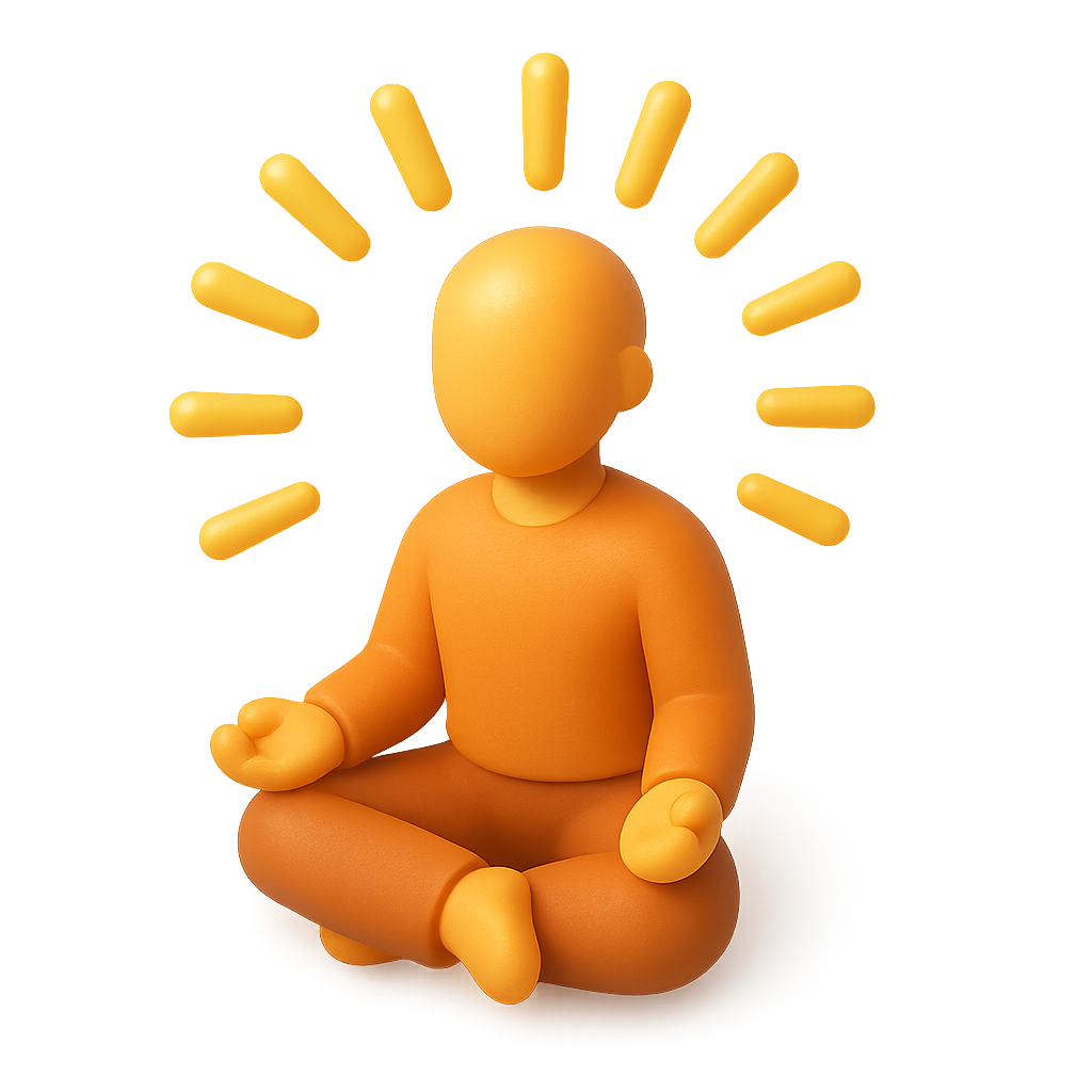 A vibrant 3D icon of a person meditating, surrounded by a halo of radiant light. The figure is depicted in an isometric view with a smooth, volumetric design.