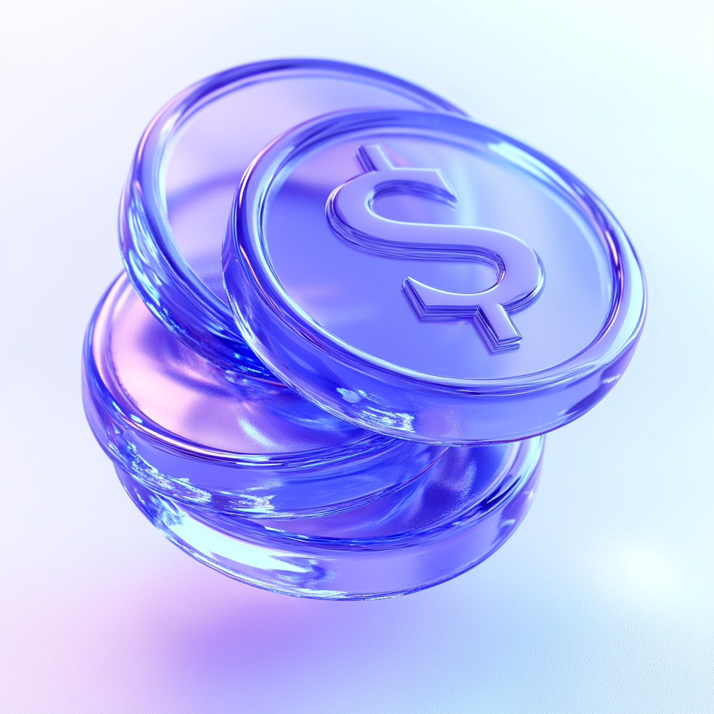 /Collection: /by davooda/Type: PNG/A visually striking 3D render of transparent dollar coins stacked against a soft gradient background, ideal for financial themes or cryptocurrency discussions.