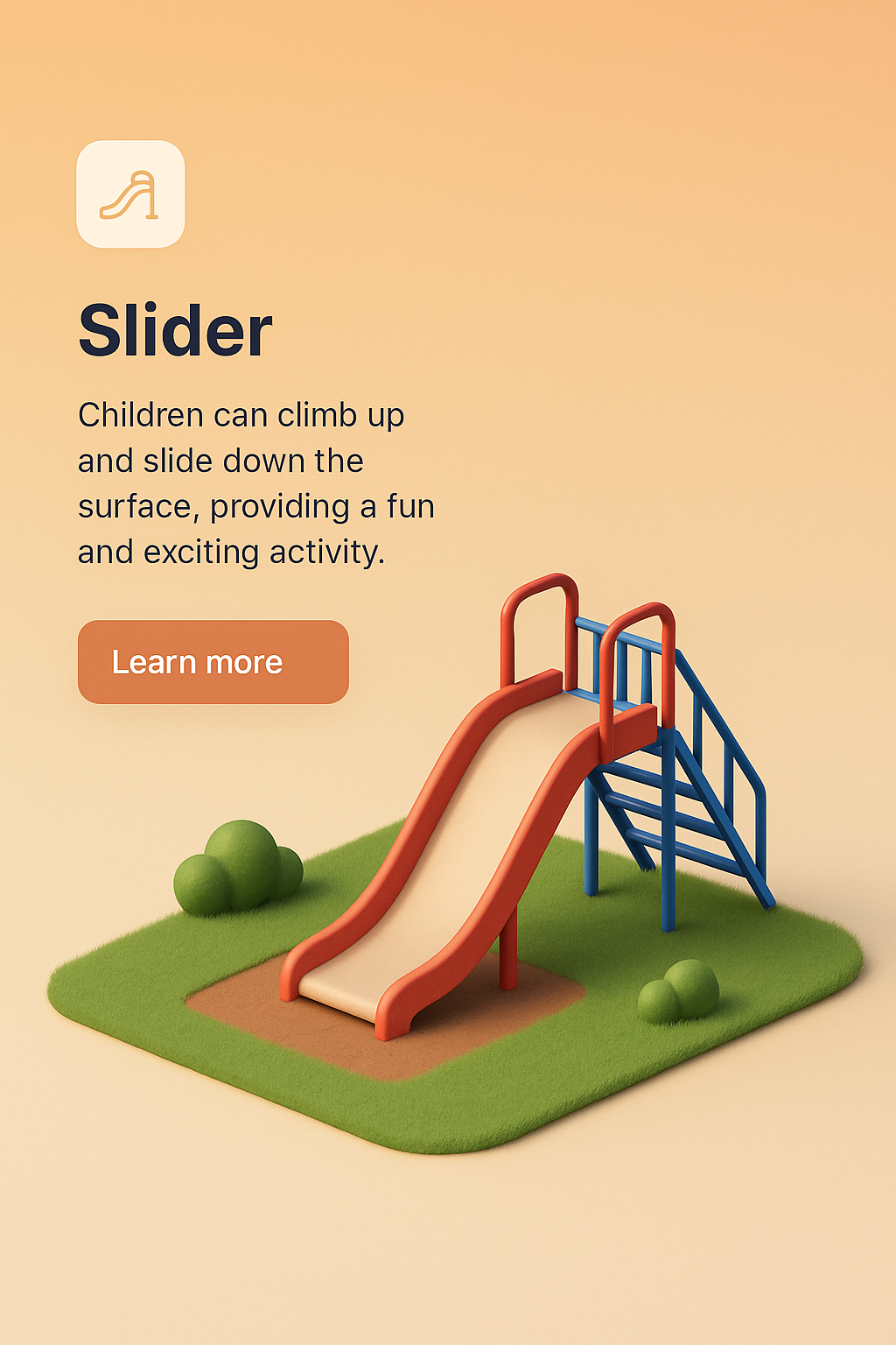 /Collection: /by davooda/Type: PNG/A zoomed-out 3D scene featuring a colorful slider on a grassy surface, accompanied by a simple gradient background. The composition includes a small action button and text block for engagement.