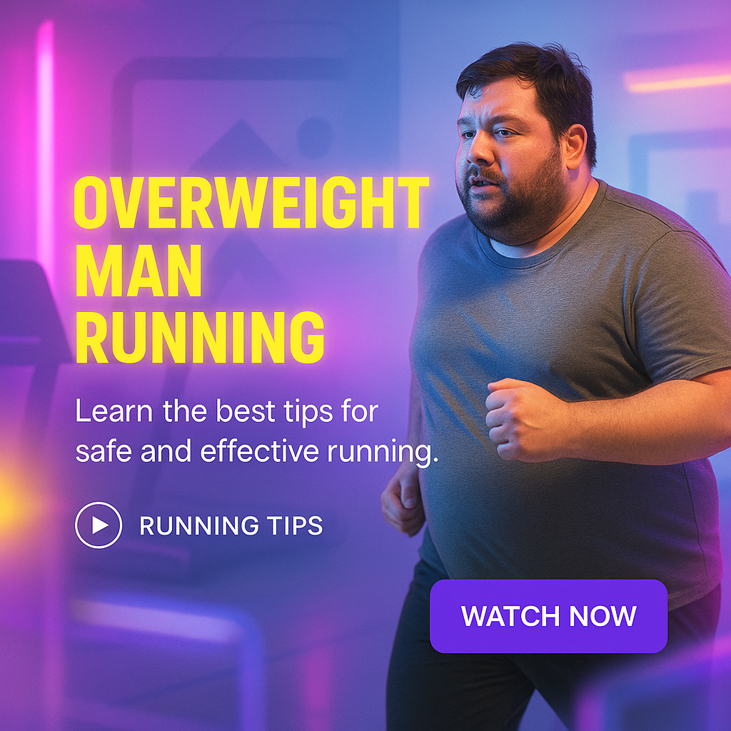Promotional Graphic for Running Tips Featuring an Overweight Man
