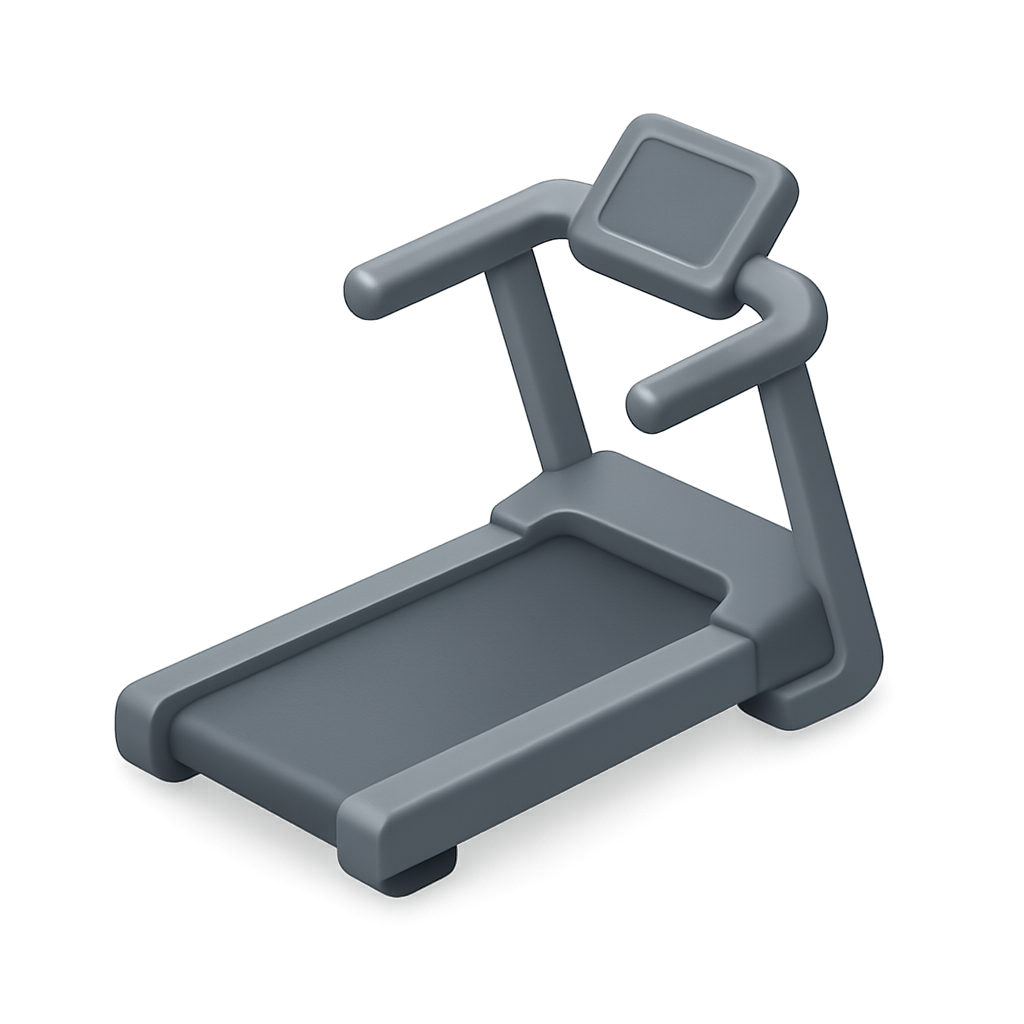 A sleek 3D icon of a treadmill viewed from a three-quarter angle, showcasing its isometric and volumetric design with a transparent background.