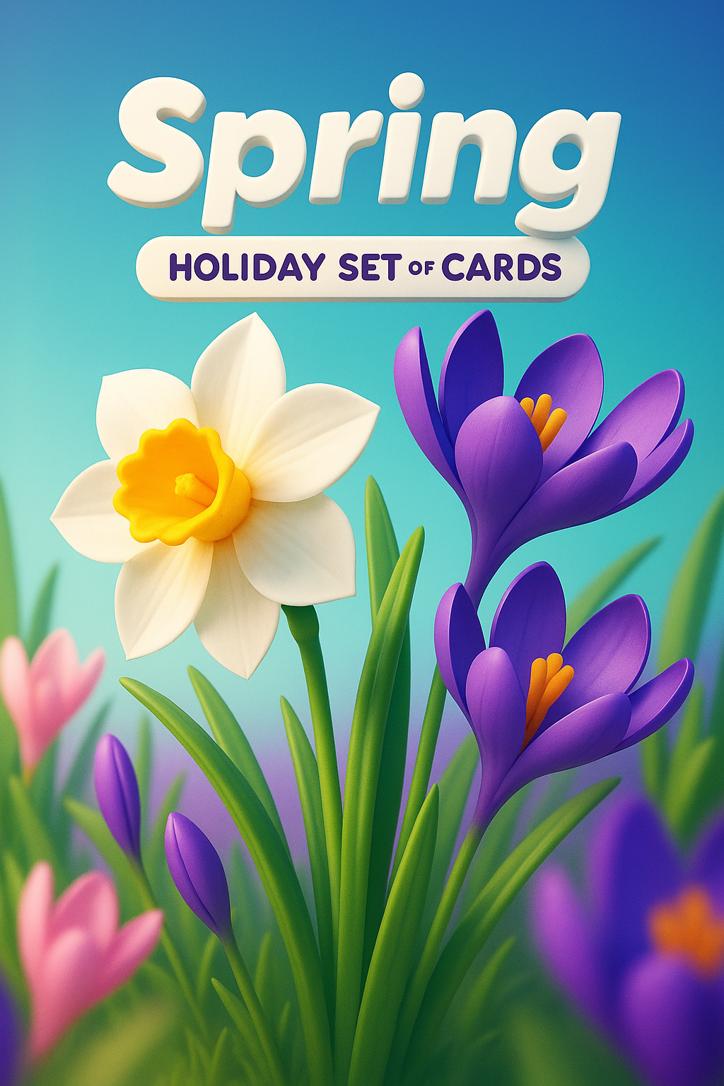 A vibrant 3D illustration featuring wildflowers, including Narcissus and Crocus, perfect for spring holidays. The design emphasizes playful typography and a layered composition.