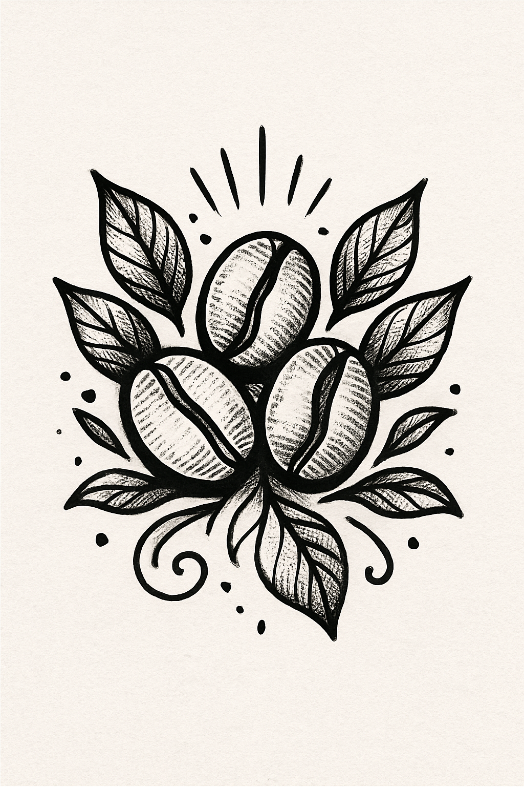 This image features a hand-drawn style illustration of coffee beans surrounded by leaves, ideal for coffee-related branding and design projects.