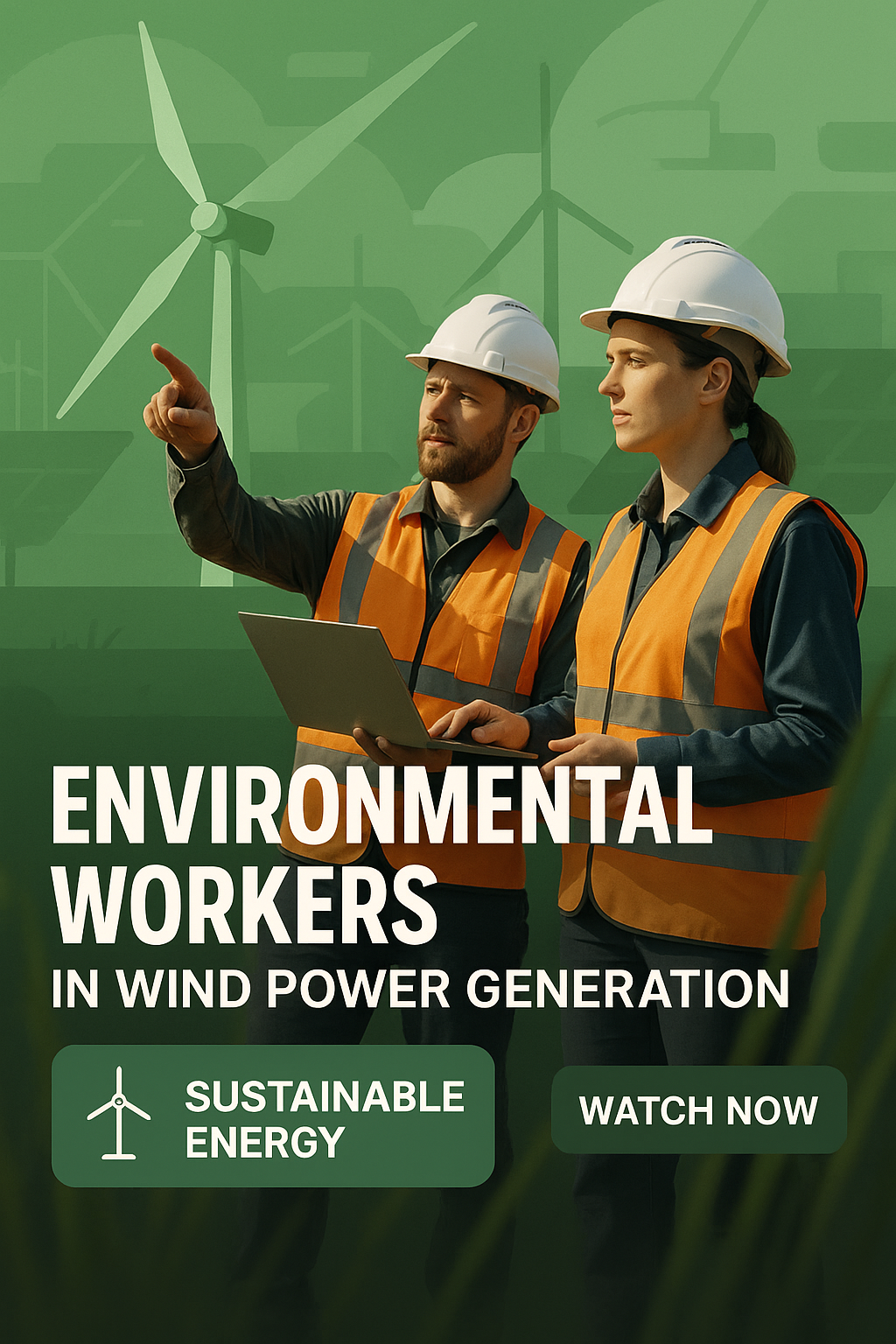 /Collection: , /by davooda/Type: PNG/Engaging promotional image showcasing environmental workers in the wind power sector. The design emphasizes sustainable energy and features a modern, professional aesthetic, ideal for campaigns focusing on renewable energy.