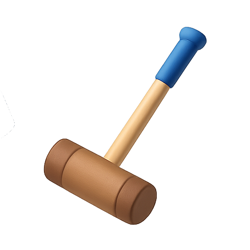 Realistic 3D render of a wooden mallet featuring a brown head and blue handle, ideal for construction or craft-related content.