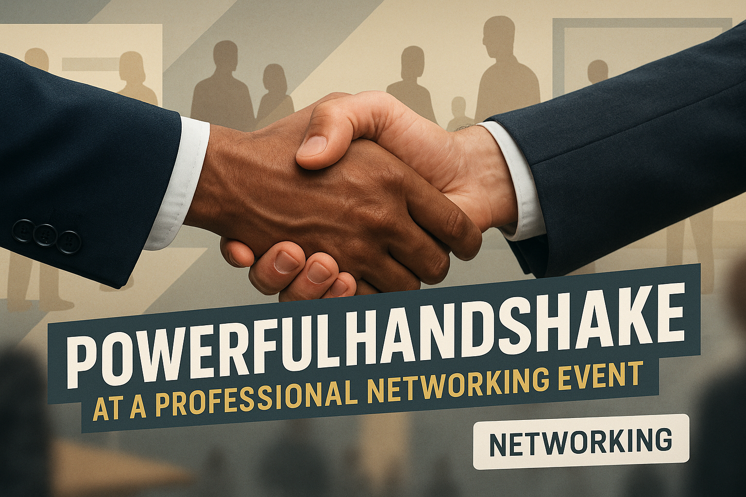 Promotional image showcasing a handshake, symbolizing connection and collaboration at a professional networking event. Ideal for social media or event marketing.