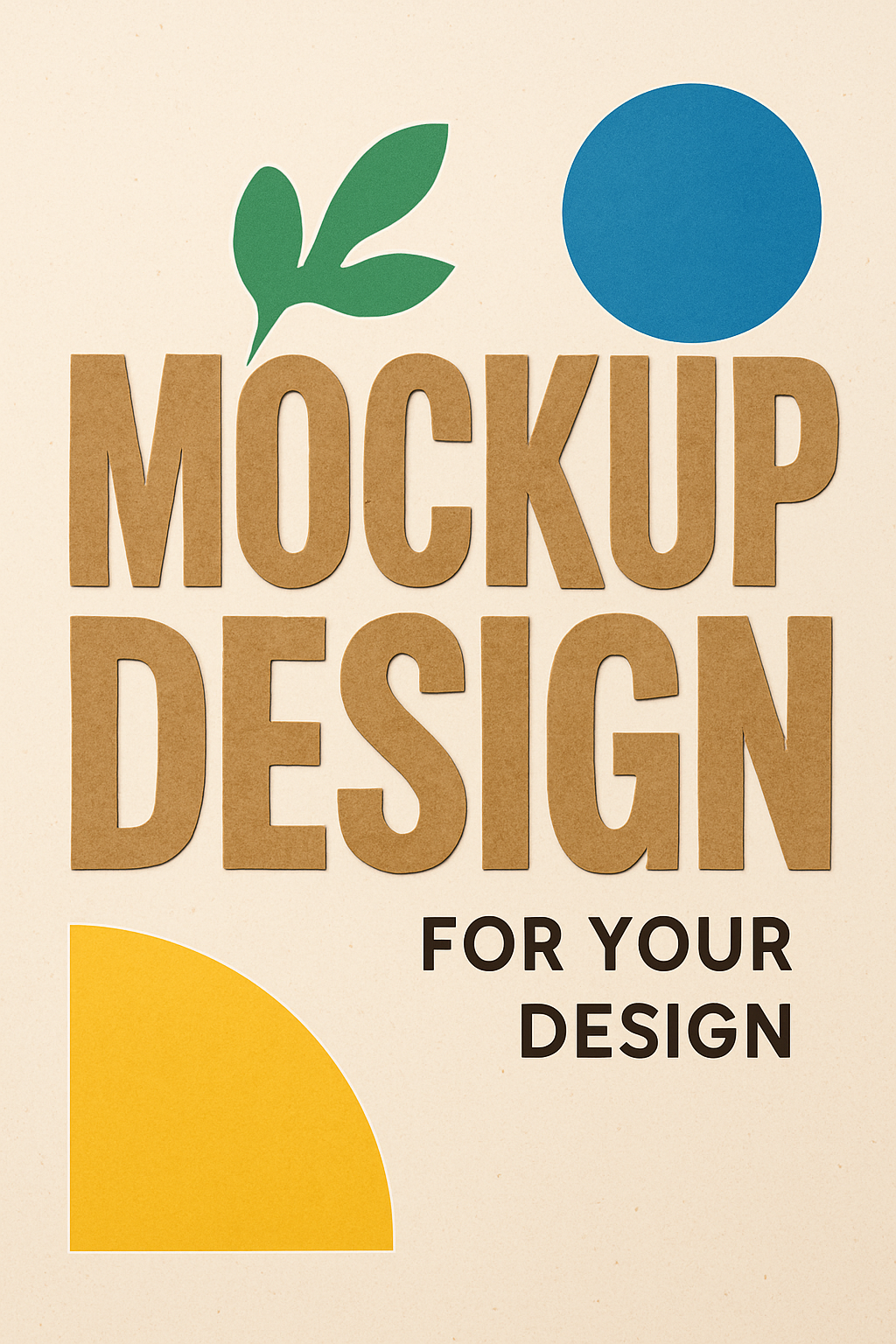 Stylized graphic mockup featuring bold typography and colorful geometric shapes, ideal for showcasing design concepts or promotional materials.