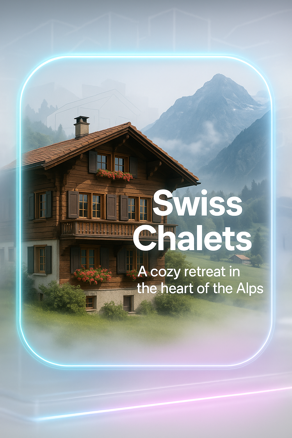A digital artwork showcasing a picturesque Swiss chalet amidst the stunning Alps, conveying a sense of warmth and tranquility, ideal for travel promotions.